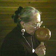 Wir bereiten uns für das Ritual vor indem wir mit Salbei räuchern, gemeinsam Rasseln und die hilfreichen Wesen, die Ahninnen und Göttinnen und die sechs Richtungen begrüßen.